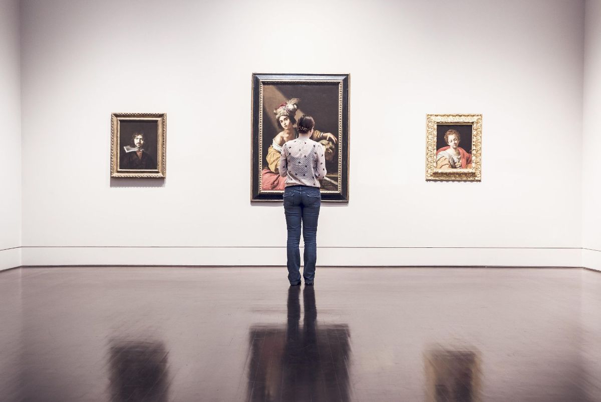woman looking at painting