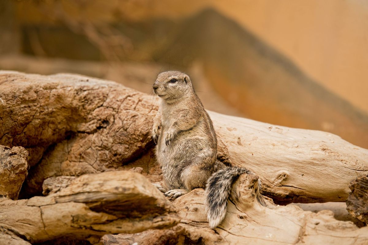 squirrel sitting on a wood table