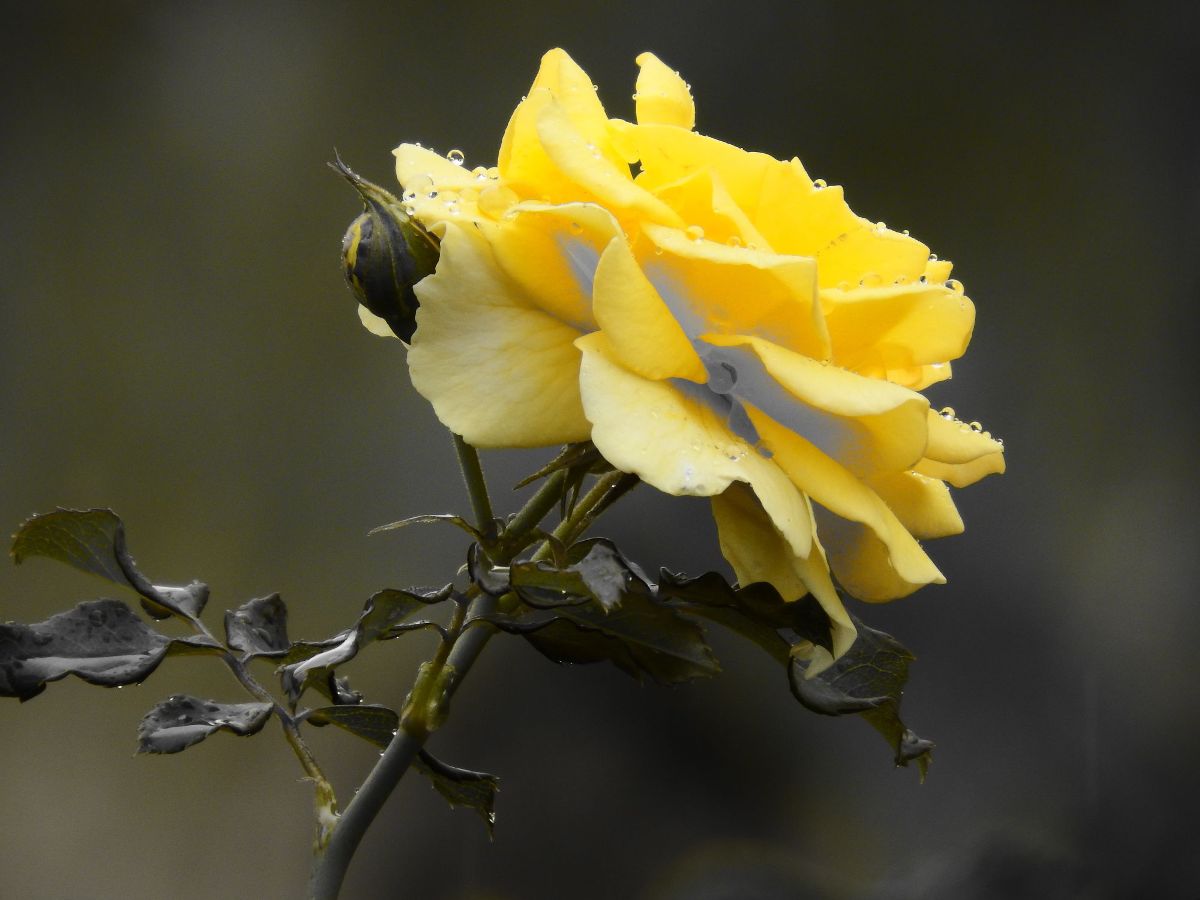 close up yellow rose side view
