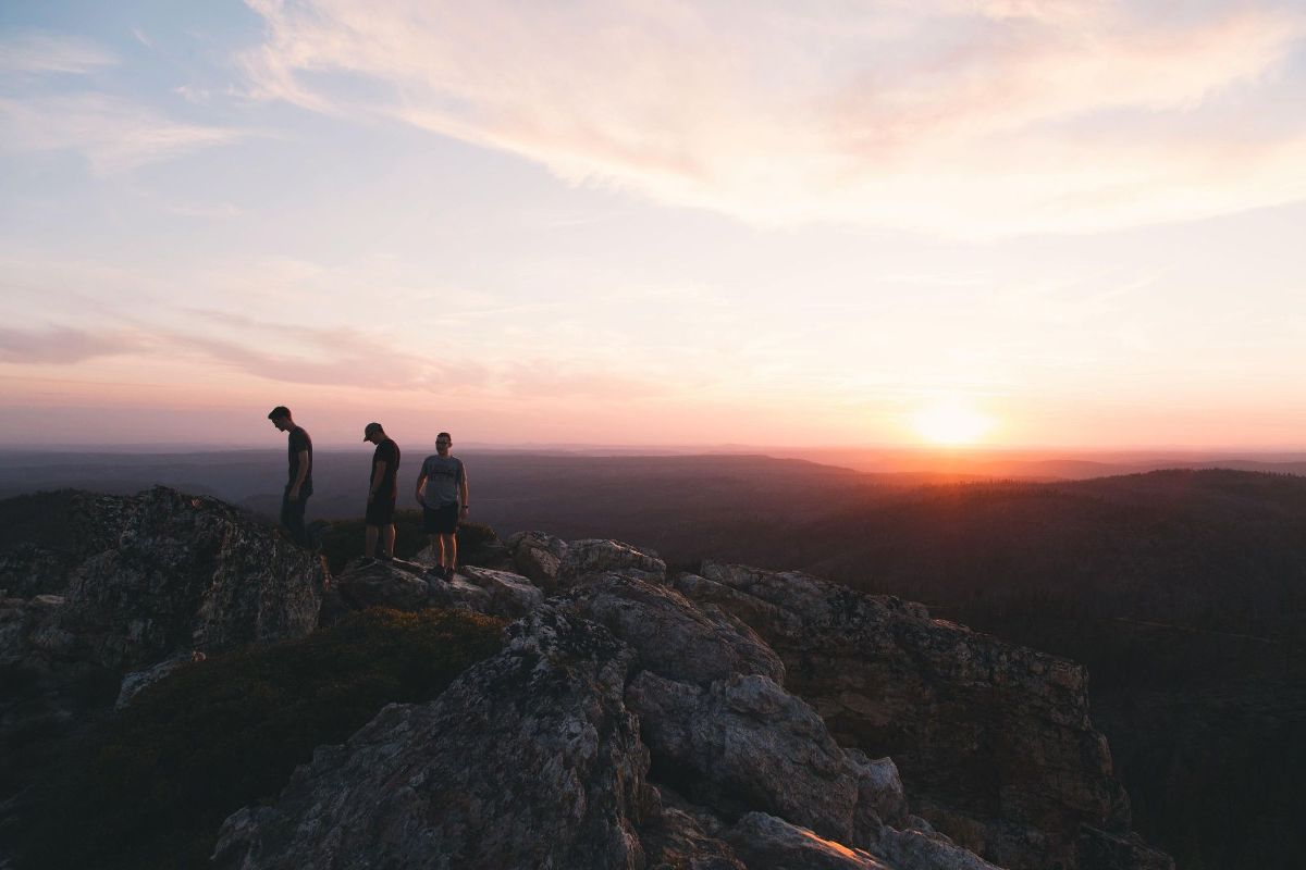 three men on a cliff