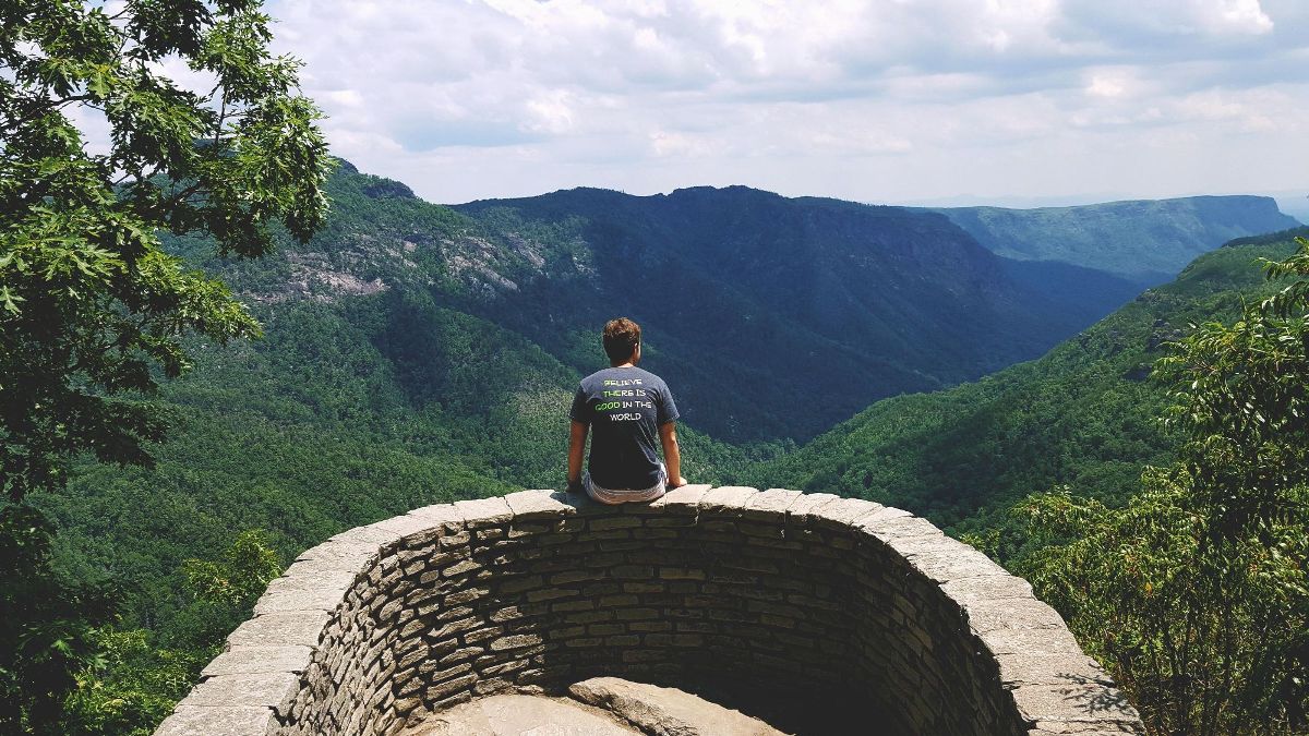 young man sitting on wall