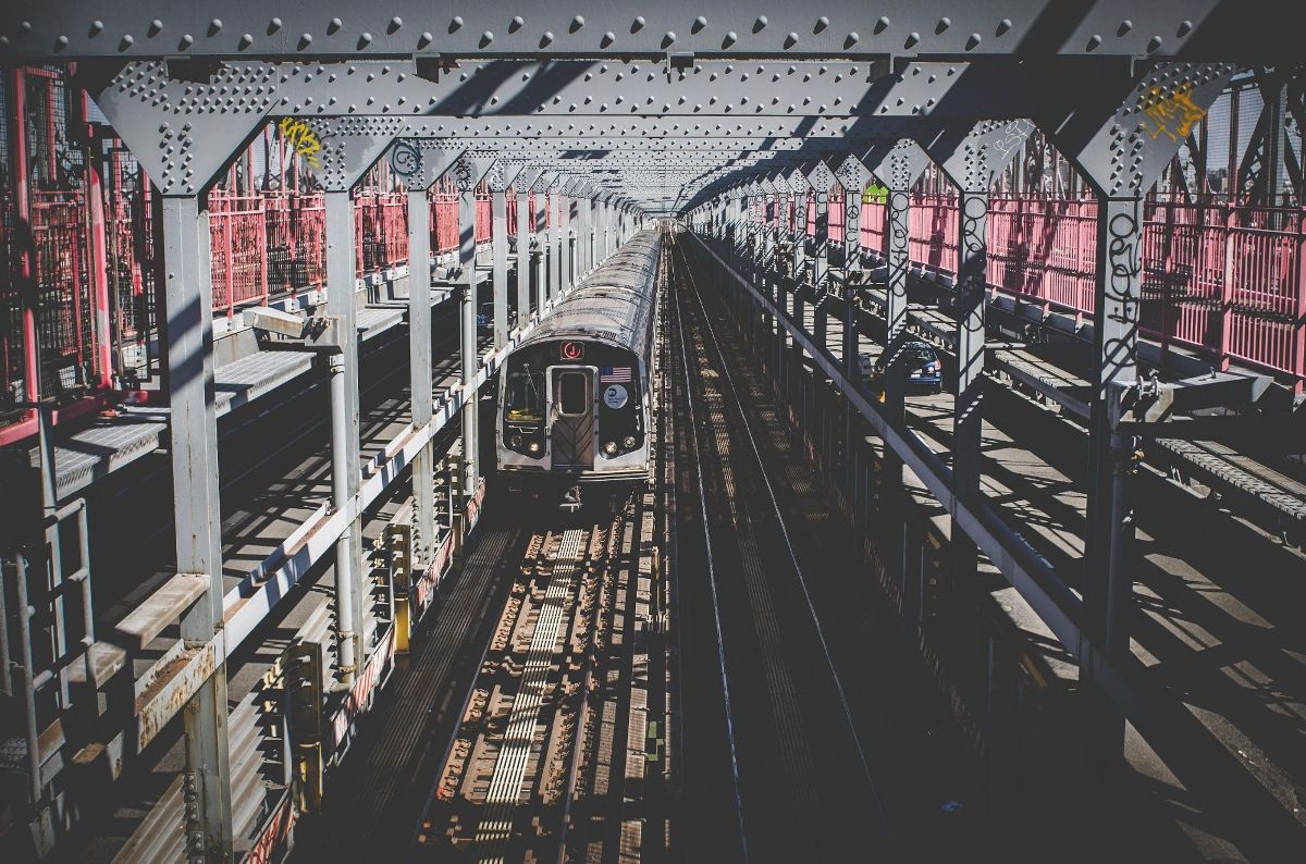 subway train on a bridge