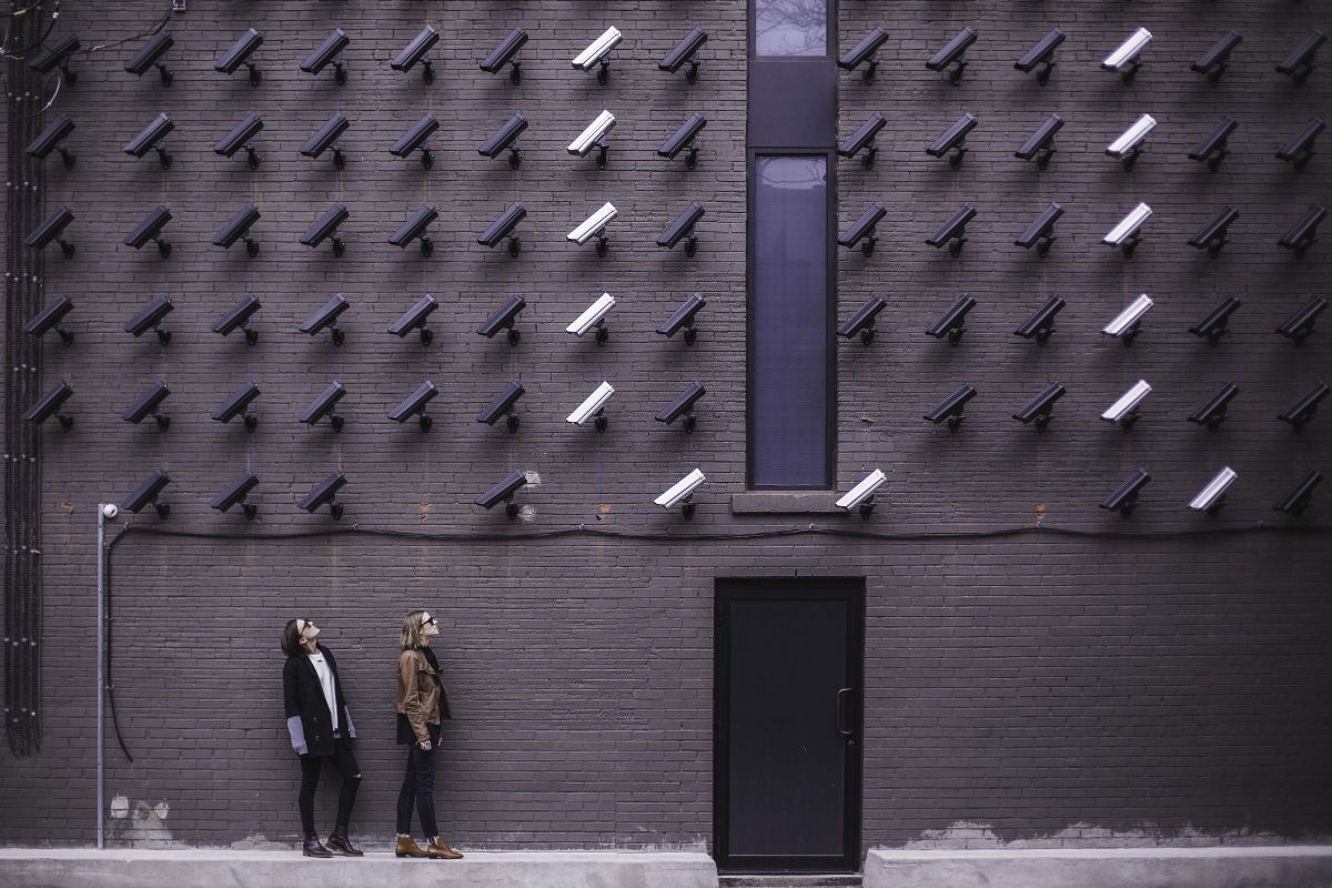 black and white security cameras looking down