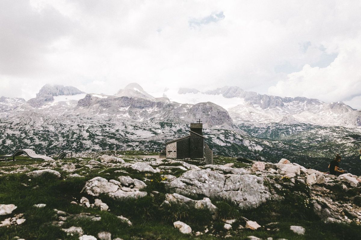 snowy church building