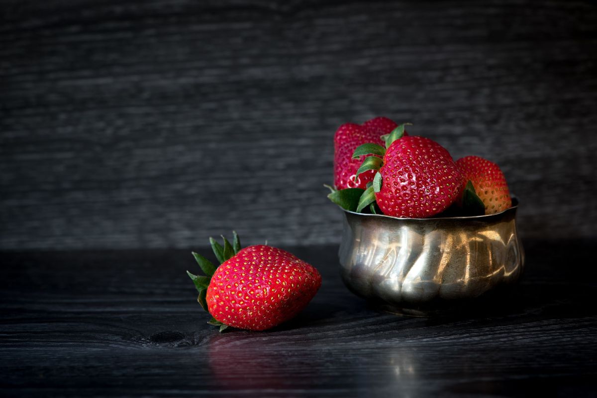 strawberries in silver container