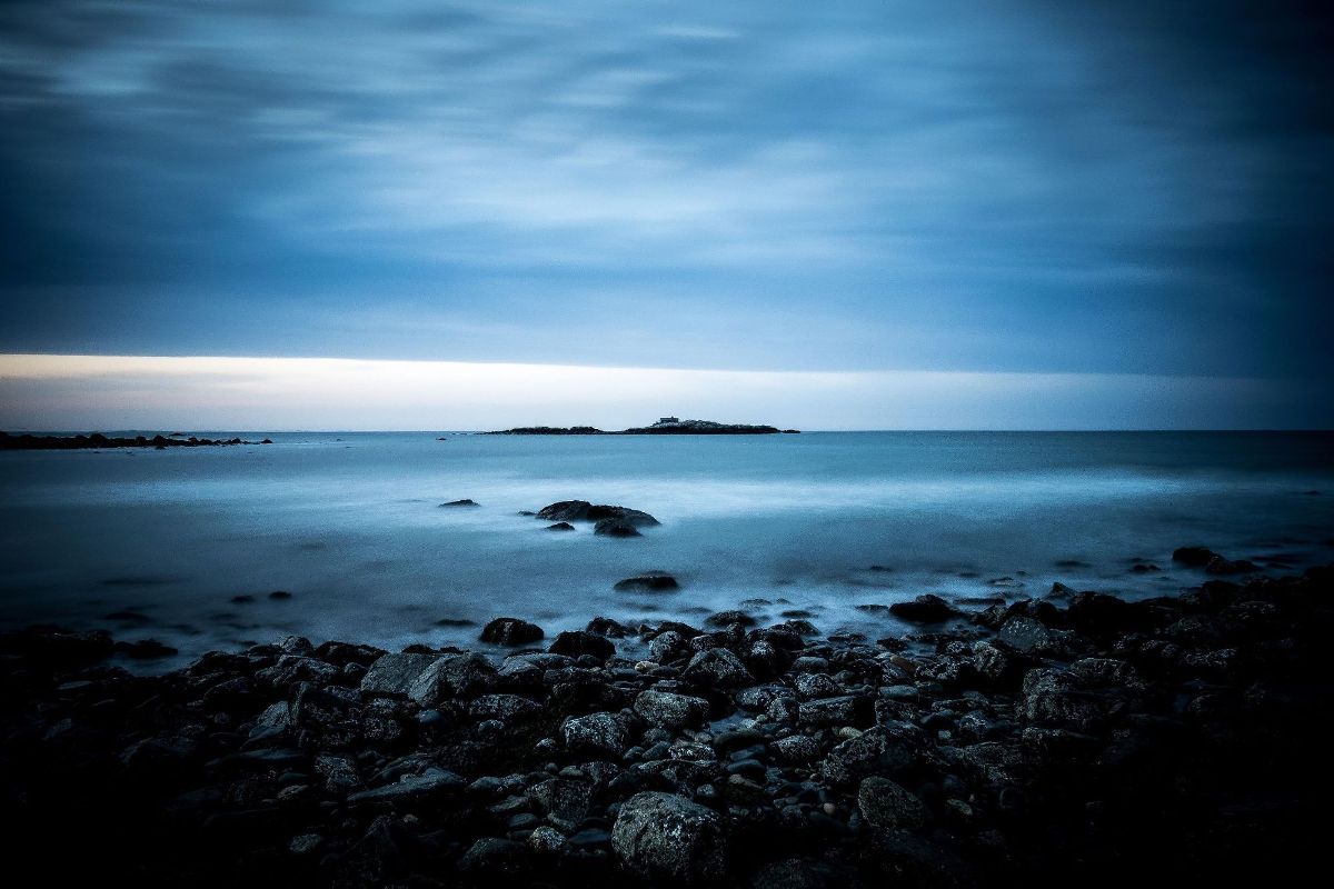 rocky beach under a cloudy sky