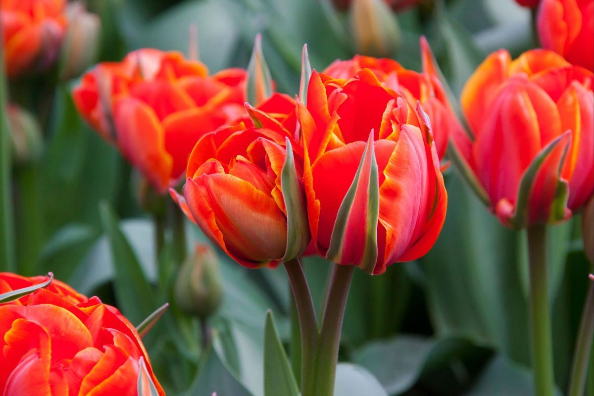 field of red tulips