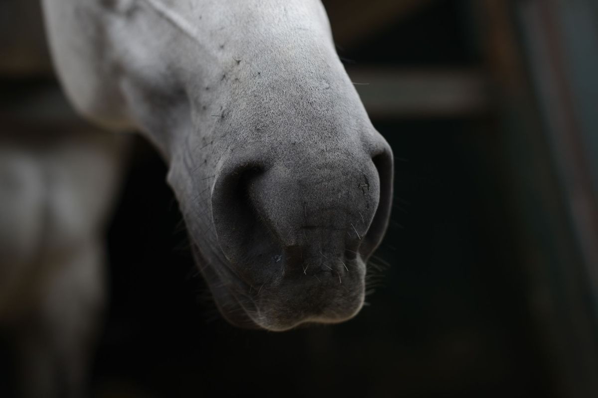 horse muzzle in black and white