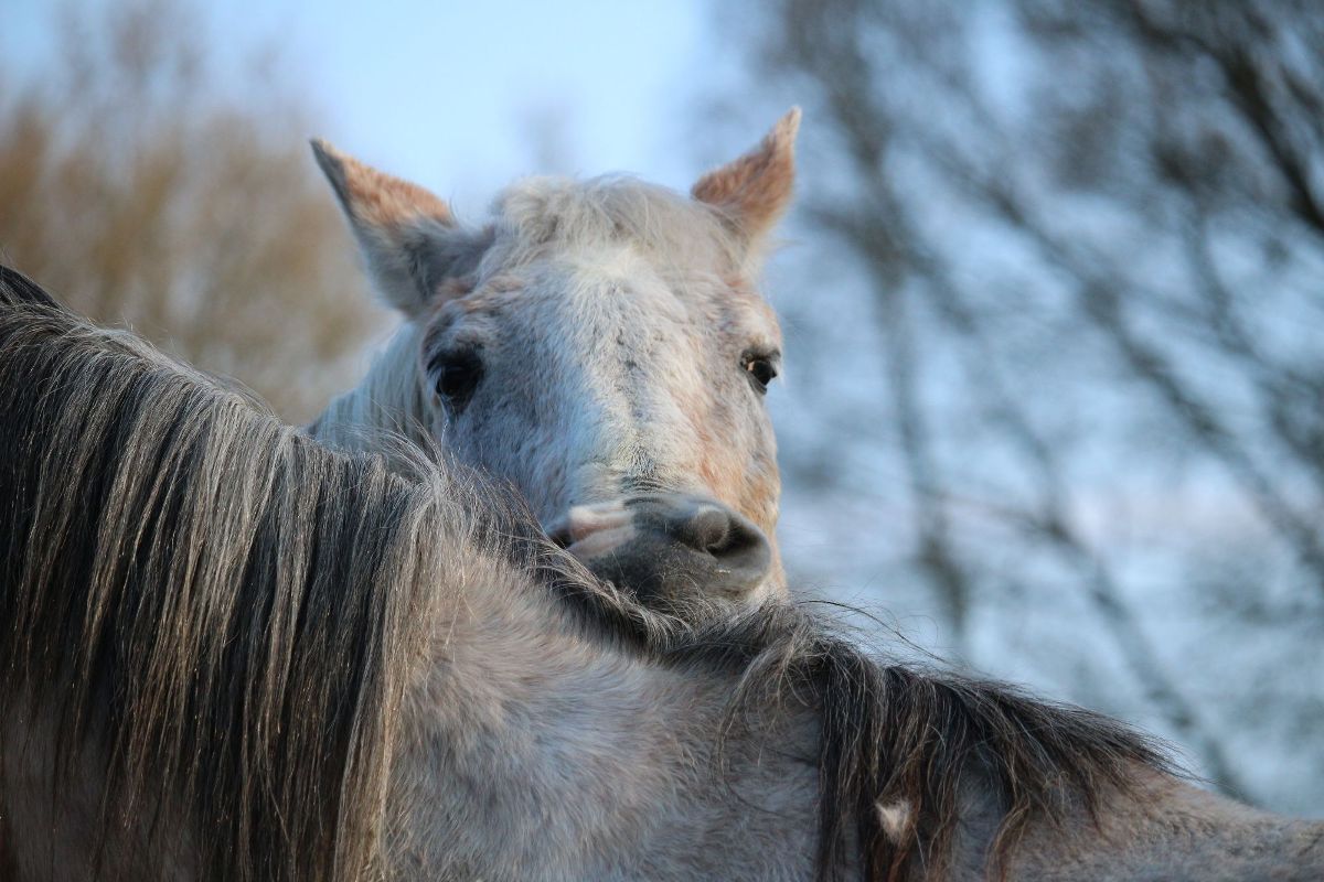 horse resting on another horse